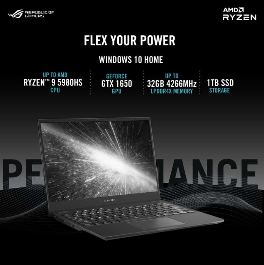 ROG Flow X13 (GV301QH-K6055TS) ราคา 49,990 บาท: AMD Ryzen 9 5900HS/Nvidia GeForce GTX1650 4GB GDDR6/16GB LPDDR4X 4266MHz/1TB M.2 NVMe PCIe 3.0 SSD/13.4” WUXGA (1920 x 1200, 16:10) IPS touch panel, 120Hz, 100% sRGB/Pantone Validated, Corning Gorilla Glass/Chiclet keyboard with White Backlight/Wi-Fi 6/62 Whrs battery/Windows 10 Home, Office Home & Student 2019