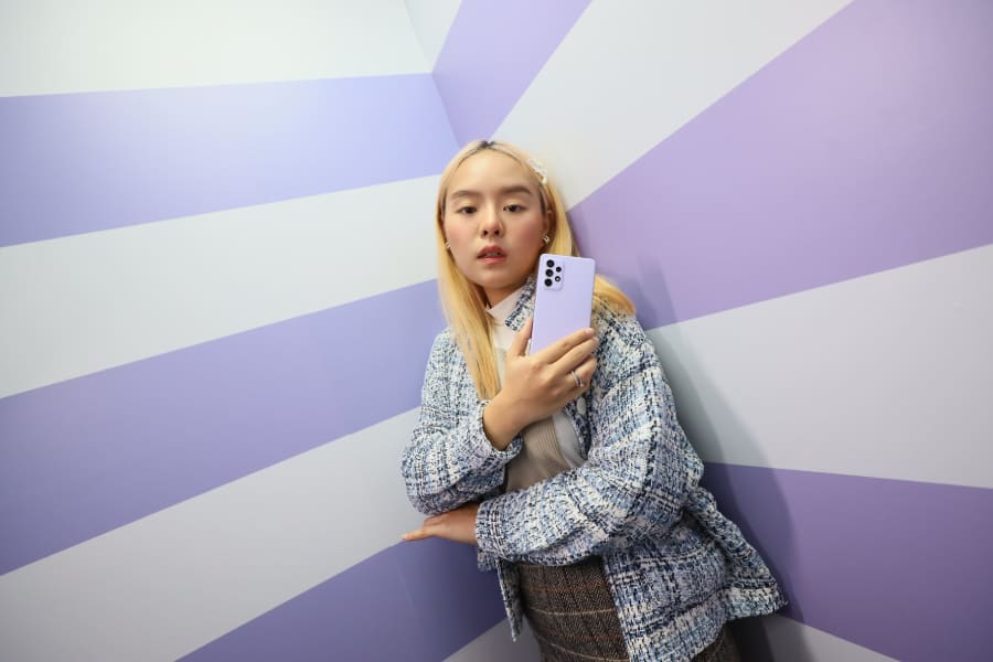 “พอได้จับ Galaxy A52 เป็นครั้งแรกก็รู้สึกชอบเลยทันที อย่างแรกที่ถูกใจคือตัวเครื่องสีม่วง (Awesome Violet) เพราะสีสวยน่ารัก ผิวสัมผัสแบบแมทต์ข้างหลังให้ความรู้สึกที่พรีเมียมมาก” คุณโม-ธัญญา เลิศสินธวานนท์ ไลฟ์สไตล์คอนเทนต์ครีเอเตอร์คนเก่ง เจ้าของช่อง MOJIKO กล่าว “กล้องหลัง 4 เลนส์เป็นอะไรที่ชอบที่สุด เพราะเหมาะกับสายคอนเทนต์มากๆ ส่วนตัวเวลาถ่าย VLOG จะใช้กล้องหน้าถ่าย ซึ่งวิดีโอที่ได้คุณภาพคมชัดมาก ส่วนกล้องหลังก็มีโหมด Super Steady ที่กันสั่นได้ดีอยู่แล้ว รวมถึงยังมีระบบ OIS ที่ช่วยกันสั่นเพิ่มให้อีกระดับหนึ่งด้วย ดีมากเลยค่ะ”