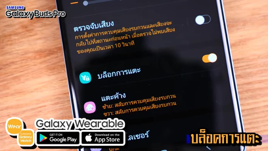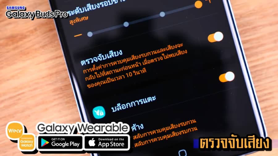 Ambient Sound กับ Active noise Cancelling แต่เดิมหูฟังตัวไหนก็ช่างในท้องตลาดเราต้องมานั้งเลือกเปิดปิด อยากต้องการฟังเงียบก็ต้องเปิด Noise Cancelling ต้อง Ambient Sound แตะทีนึง ซัมซุงคิดไปไกลกว่านั้นใน Galaxy Buds Pro ตัวนี้ Ambient Sound กับ Noise Cancelling เราไม่ต้องไปเลือกเปิดปิด เราสั่งเปิดปิดได้จากแอปด้วยการแตะได้หมดถ้าเราเปิดเป็นฟังก์ชันตรวจจับเสียง