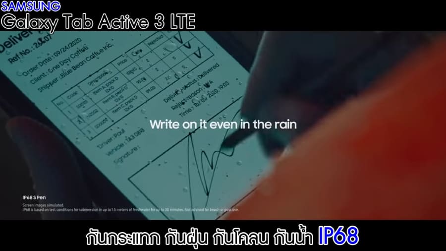 มีปากกา S Pen ด้วย Samsung Galaxy Tab Active 3 ตัวนี้มาพร้อมกับปากกา S Pen และเป็นปากกา S Pan ที่ใช้งานได้ตลอดเวลาเลยเขียนหน้าจอได้ตลอดไม่ต้องชาร์จแบตนะพร้อมใช้งานอยู่เสมอและเป็นการออกแบบปากกาให้เข้ากับหน้าจอนี้มากๆ นั่นก็คือออกแบบแบบอ้วนดําทําให้ปากกาเป็นด้ามใหญ่ๆ เพื่อที่ว่าเวลาเราออกไปไซต์งานข้างนอก สมมุติเป็น Engineer จะใส่ถุงมือเซฟตี้อยู่ เราก็สามารถหยิบปากกาตัวนี้เอามาแล้วเขียนลงบนหน้าจอได้อย่างถนัดมือ แม้นว่าจะใส่ถุงมืออยู่ก็ตาม