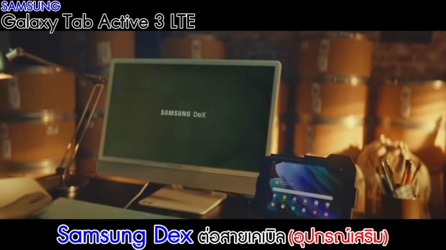 นอกจากนี้ยังใส่เทคโนโลยีใหม่ๆ มาเพื่อให้ใช้งาน Galaxy Tab Active 3 LTE เครื่องเดียวโดยที่ไม่ต้องพกคอมพิวเตอร์ไปด้วย อยากจะใช้งานเป็นคอมพิวเตอร์ง่ายๆ เขามีช่องพอร์ตต่อคีย์บอร์ดมาให้เรียบร้อย เสียบลงบนคีย์บอร์ดแล้วก็พิมพ์งานได้เลย หรือจะต่อเข้ากับหน้าจอมอนิเตอร์ใช้งานเป็นเครื่องคอมพิวเตอร์ก็ทำได้แต่ต้องใช้สายใช้สาย USB C to HDMI