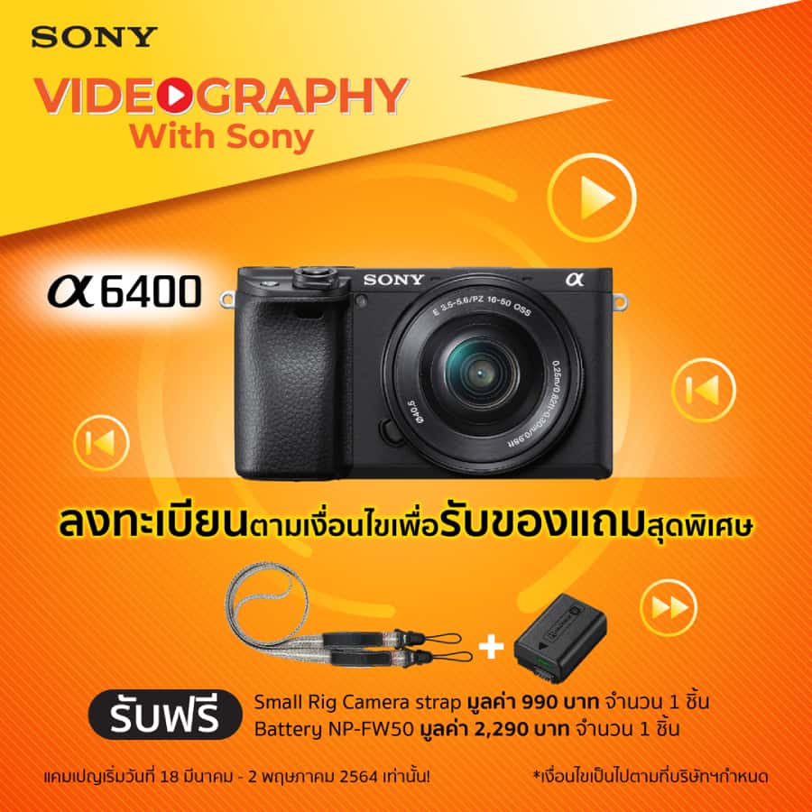 - ลูกค้าที่ซื้อผลิตภัณฑ์กล้องโซนี่รุ่น ILCE-6400 รับฟรี!!!