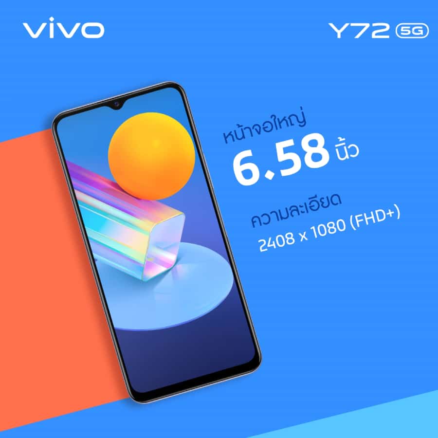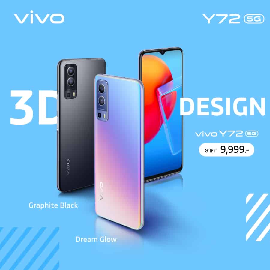 Vivo Y72 5G สมาร์ตโฟน Y Series รุ่นแรกที่รองรับการเชื่อมต่อเครือข่าย 5G พร้อมแนวคิด ‘5G เข้าถึงทุกที่ ทุกเวลา’ อัดแน่นด้วยสุดยอดฟีเจอร์ที่ครบครัน ตอบรับทุกไลฟ์สไตล์ของคนรุ่นใหม่ในยุคโซเชียลเจเนอเรชัน กับราคาไม่ถึงหมื่น พร้อมให้ทุกคนเป็นเจ้าของเพียง 9,999 บาท