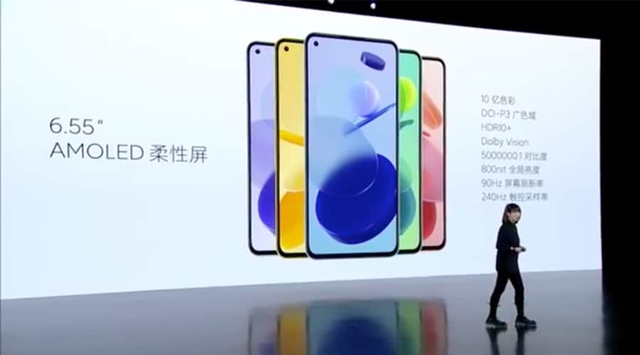 สมาร์ทโฟนรุ่นนี้มาพร้อมหน้าจอแสดงผลเรียบ 2.5D AMOLED แบบ Full HD+ ขนาด 6.55 นิ้วแบบ punch-hole ที่มุมซ้ายบนของหน้าจอ รองรับ HDR10 อัตรา refresh rate 90Hz ด้วยความที่หน้าจอเป็น OLED ทาง Xiaomi จึงตัดสินใจไม่ใส่ตัวสแกนลายนิ้วมือภายใต้หน้าจอมาให้ แต่มีแซ็นเซอร์สแกนลายนิ้วมือไว้ที่ปุ่มเปิด-ปิดเครื่องแทน