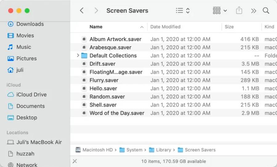 - ลากไฟล์ Hello.saver ไปที่เดสก์ท็อป