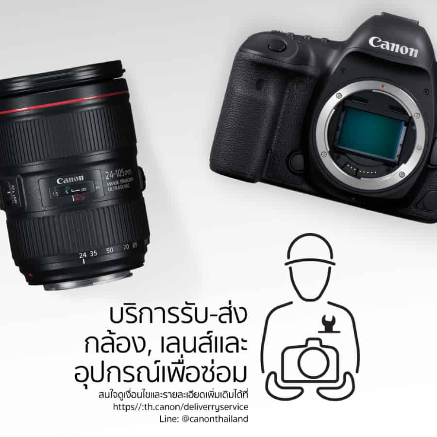 Canon เปิดบริการเดลิเวอรี่เซอร์วิสครบวงจร สำหรับการรับ-ส่งซ่อมกล้อง เลนส์และอุปกรณ์เสริม สำหรับพื้นที่กรุงเทพฯ และปริมณฑล แบบซ่อมภายในระยะเวลาทำการ 15 วัน และแบบซ่อมด่วนภายใน 1 วัน ค่าบริการรับและส่ง เริ่มต้นที่ 300-500 บาท ตอบโจทย์ไลฟ์สไตล์แบบ New Normal