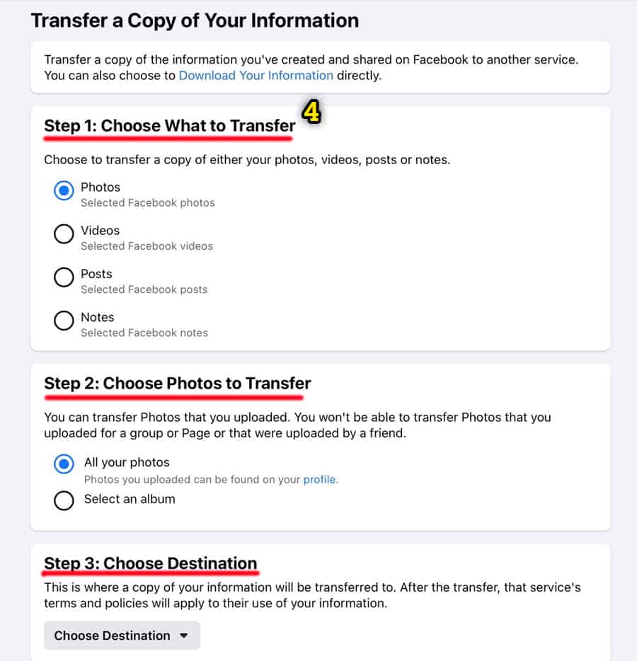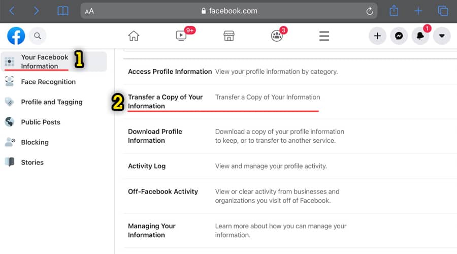 2. เลือก Transfer a Copy of Your Information (โอนย้ายสำเนาข้อมูลของคุณ)