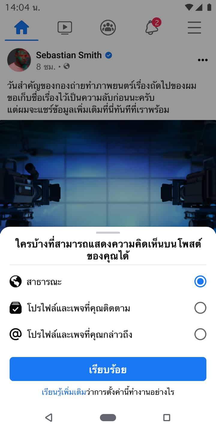 Facebook แนะนำเครื่องมือที่ปรับปรุงใหม่เพื่อช่วยให้คุณควบคุมสิ่งที่แชร์ไปยังฟีดข่าวได้มากขึ้น โดยผู้ใช้สามารถเลือกได้ว่าใครสามารถแสดงความคิดเห็นในโพสต์สาธารณะของคุณได้บ้าง ซึ่งคุณสามารถควบคุมกลุ่มเป้าหมายที่จะเข้ามาแสดงความคิดเห็นสำหรับโพสต์สาธารณะของคุณได้แล้ว