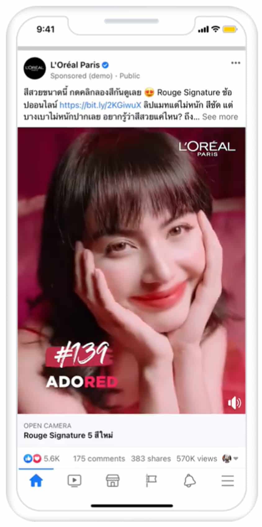 เทคโนโลยีใหม่ๆ เช่น AR หรือ Augment Reality และวิดีโอนั้น ได้กลายเป็นพื้นฐานของประสบการณ์การช้อปปิ้งสำหรับผู้บริโภคไปแล้ว โดยร้อยละ 88 ของคนไทยกล่าวว่า AR ได้เสริมประสบการณ์รูปแบบดิจิทัลให้พวกเขา และพวกเขาก็หวังที่จะเห็นฟีเจอร์นี้เพิ่มเติมจากแบรนด์ต่างๆ นอกจากนี้ยังมีการเปิดเผยว่าคนไทย 37 ล้านคนรับชม Facebook Watch อย่างน้อยหนึ่งนาทีในแต่ละเดือน โดนรายงานจาก Kantar ระบุว่าร้อยละ 97 ของผู้ที่รับชมวิดีโอของผู้เผยแพร่นั้น มีการใช้ Facebook Watch เป็นประจำ
