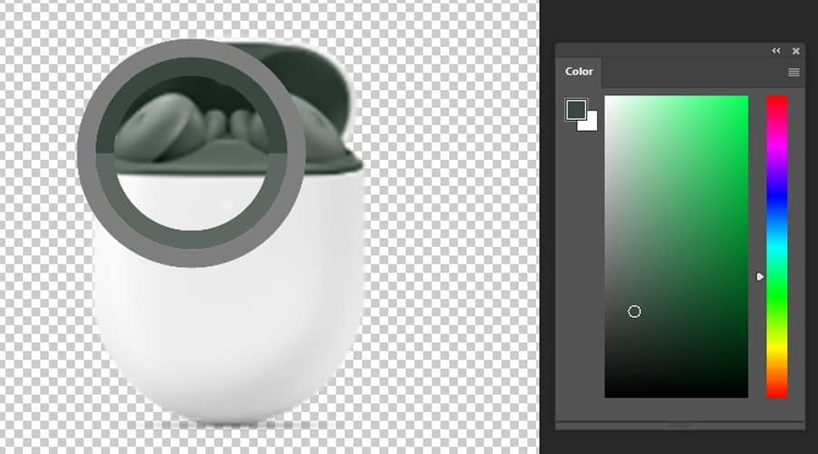 จากรูป จะเห็นว่าเจ้าหูฟังไร้สายอยู่ใน charging case ที่ดูคล้ายกับหูฟัง Buds รุ่นที่ 2 แต่ก็มีจุดที่แตกต่าง โดยหูฟังและด้านในของเคสเป็นสีเขียวทั้งคู่ เป็นเฉดสีเขียวที่ดูเข้มกว่า Quite Mint ที่พบในหูฟัง Buds ระดับพรีเมียม