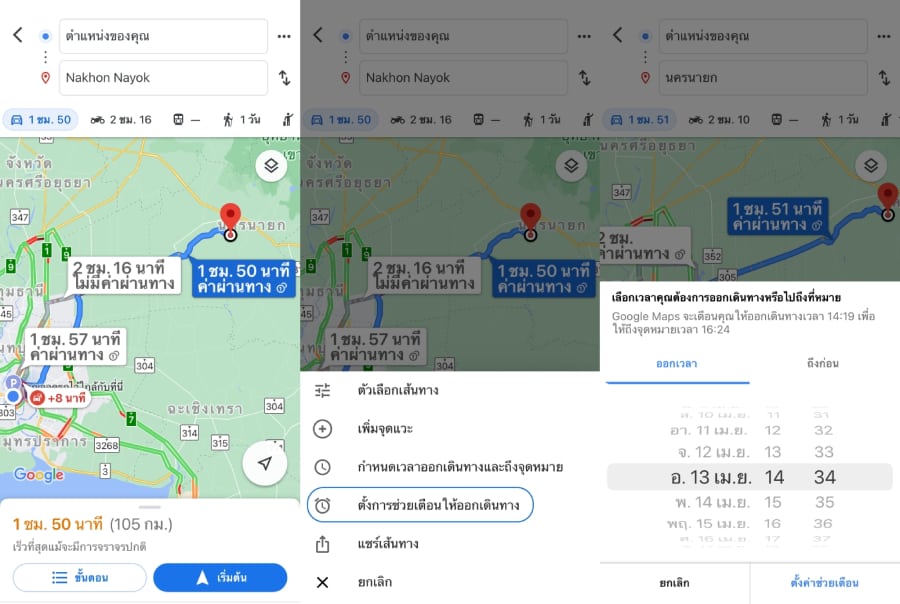 ตัวอย่างฟีเจอร์บน Google Maps ที่สามารถนำมาใช้เพื่อช่วยจัดการการเดินทาง