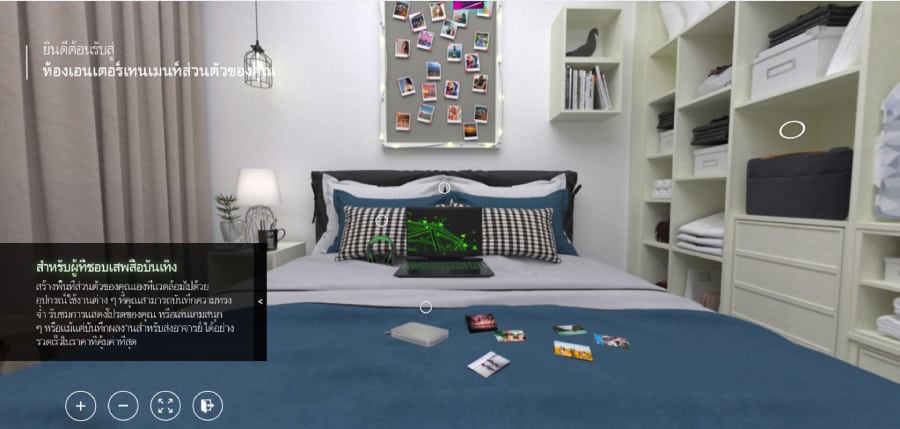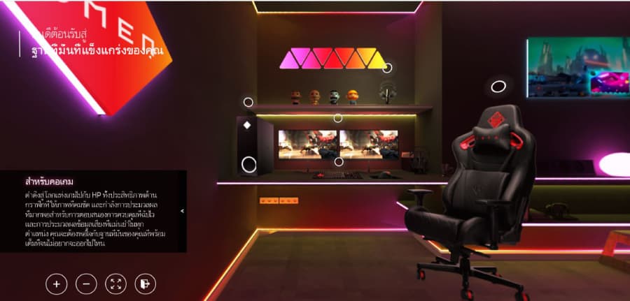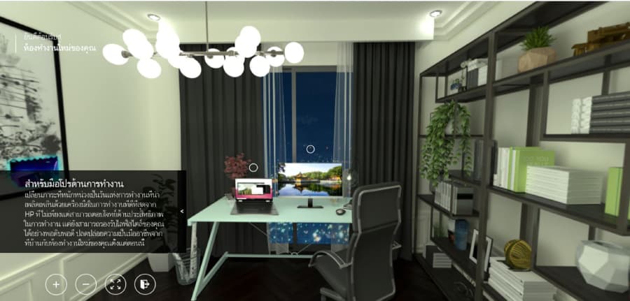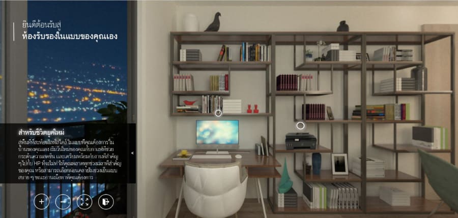 HP virtual showroom ทั้ง 6 ห้อง สร้างประสบการณ์ผ่านมุมมอง 360 องศา นำเสนอด้วยมัลติมีเดีย แอนิเมชัน และวิดีโอ ด้วยปัจจุบันที่มีการทำงานจากบ้านเพิ่มมากขึ้น โชว์รูมเสมือนจริง นี้จึงใกล้เคียงกับไลฟ์สไตล์ในชีวิตจริงมากที่สุด