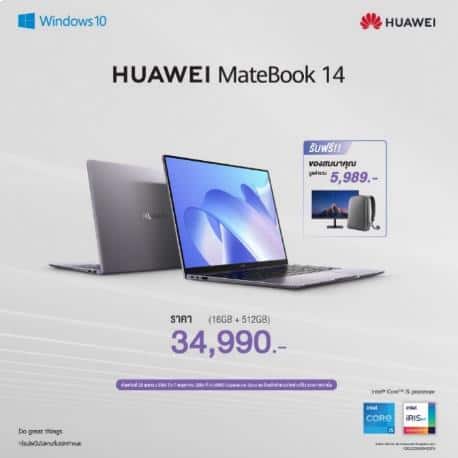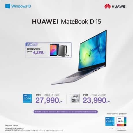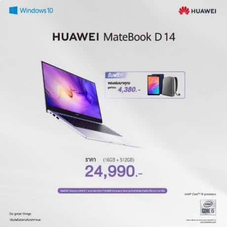 HUAWEI MateBook 14, HUAWEI MateBook D 15 และ HUAWEI MateBook D 14 พร้อมวางจำหน่ายตั้งแต่วันที่ 8 พฤษภาคม 2564 ใน HUAWEI Experience Store และร้านค้าตัวแทนจำหน่ายที่ร่วมรายการ รวมถึงบนช่องทางออนไลน์ http://consumer.huawei.com/th ตามรายละเอียด ดังนี้