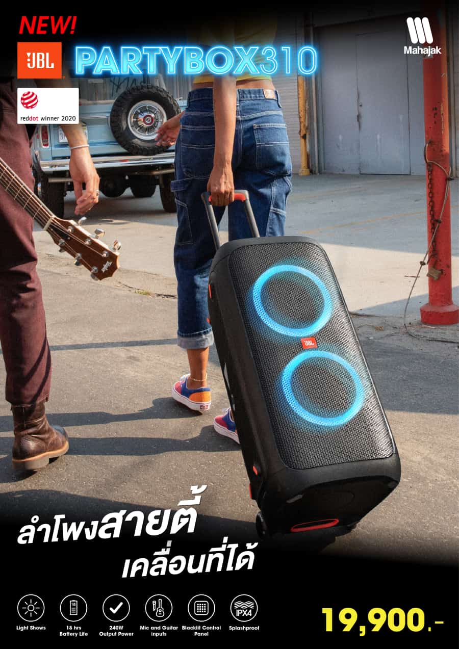 Mahajak ผู้นำเข้าเครื่องเสียงยี่ห้อ JBL, Harman Kardon, Denon, Shure เปิดตัว New!! JBL PARTYBOX 310 ลำโพงสายตี้ เคลื่อนที่ได้ ราคา เปิดตัวอยู่ที่ 19,900 บาท