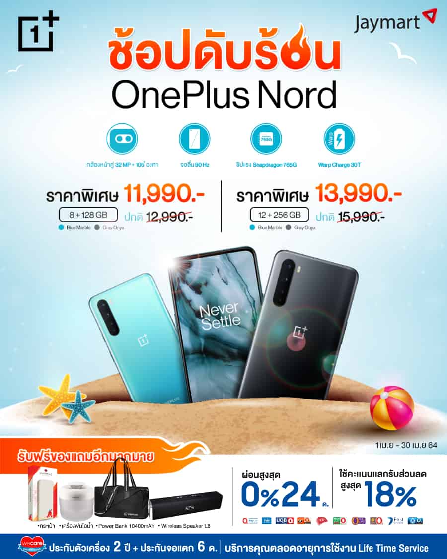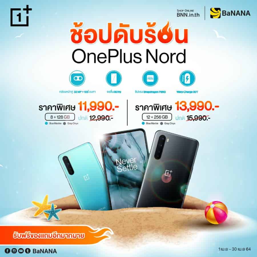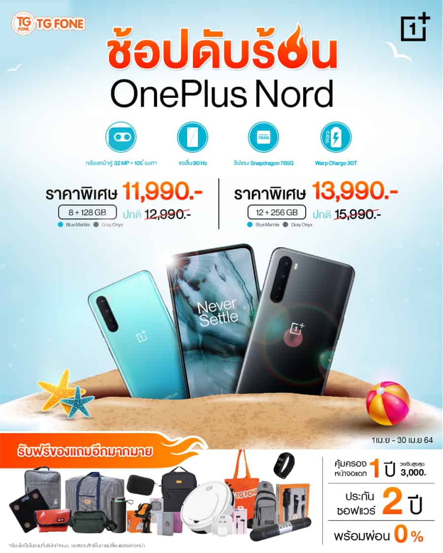 ต้อนรับเดือนเมษายนด้วยโปรโมชั่นสุดพิเศษ มอบเซอร์ไพรส์ OnePlus Nord สมาร์ทโฟนที่รวมความสุดยอดไว้ในหนึ่งเดียวในราคาสุดพิเศษเริ่มต้นเพียง 11,990 บาท เพื่อเป็นของขวัญ พร้อมด้วยของสมนาคุณอย่างจุใจ