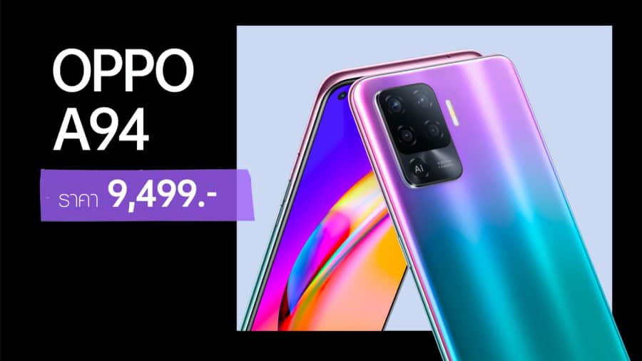 สัมผัสสมาร์ทโฟน OPPO A94 ใช้ชีวิตให้เต็มสปีด ในราคา 9,499 บาท ได้แล้ววันนี้ ที่ OPPO Brand Shop ทุกสาขา และตัวแทนจำหน่ายทั่วประเทศ