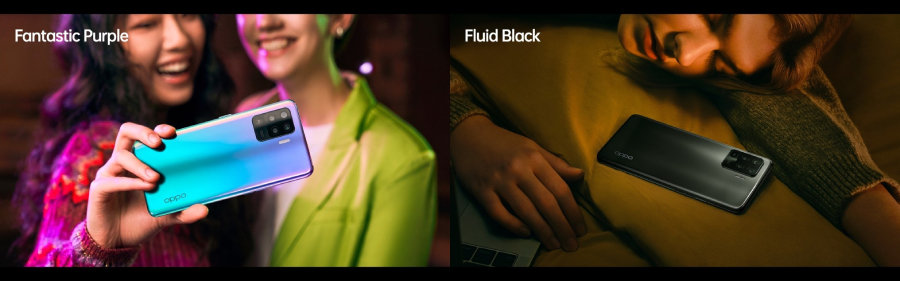 มาพร้อมดีไซน์บางเบา ฝาหลังโค้ง 3 มิติ และหน้าจอ Punch-hole AMOLED ขนาด 6.43 นิ้ว โดย OPPO A94 มีให้เลือก 2 สี คือ สีม่วง Fantastic Purple และสีดำ Fluid Black วางจำหน่ายแล้ว ในราคา 9,499 บาท