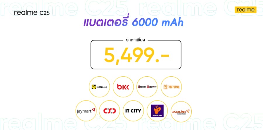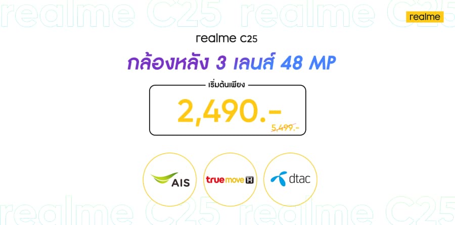 realme C25 สมาร์ทโฟนกล้อง 48 ล้านพิกเซล แบตจุใจ 6000 mAh ที่ realme Brand Shop 6 เมษายนนี้ มาจับจองเป็นเจ้าของได้แล้วที่ realme Brand Shop และตัวแทนจำหน่ายทั่วประเทศ ราคา เริ่มต้นเพียง 2,490 บาท