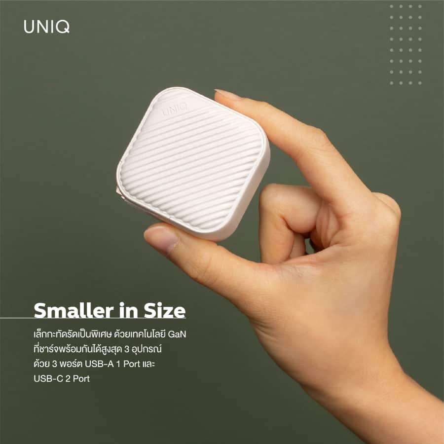 สำหรับอะแดปเตอร์ Uniq รุ่น Verge Pro 66W สัมผัสพลังที่เหนือกว่า เล็กกะทัดรัด ชาร์จพร้อมกันได้สูงสุด 3 อุปกรณ์ ด้วยกำลังไฟสูงสุด 66W โดยการนำเทคโนโลยี GaN (Gallium Nitride) มาใช้เพื่อให้อะแดปเตอร์มีขนาดเล็กลงกว่าเดิม แต่ให้ประสิทธิภาพในการชาร์จไฟที่มากขึ้นกว่าเดิม ประหยัดพลังงานมากขึ้น และความร้อนน้อยลงเมื่อเทียบกับอะแดปเตอร์ในปัจจุบันที่ใช้เทคโนโลยี Silicon ในการผลิต