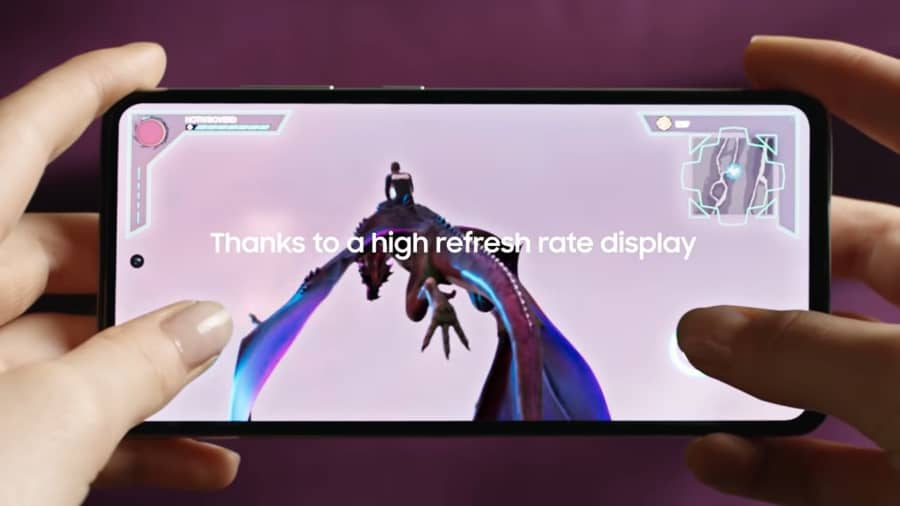 ประสิทธิภาพของจอก็สำคัญไม่แพ้กัน Galaxy A72 จึงมาพร้อมกับรีเฟรชเรทที่ 90Hz ให้การตอบสนองไว ภาพกราฟฟิกลื่นไหลไม่กระตุก และสามารถโฟกัสข้าศึกได้ชัดขึ้นด้วยหน้าจอ Infinity-O ขนาดใหญ่เต็มตาถึง 6.7 นิ้ว คุณภาพระดับ Super AMOLED FHD+ ให้ภาพสวยคมชัด สมจริง พร้อมปรับความสว่างได้สูงสุดถึง 800 nits นอกจากนี้ สำหรับใครที่นิยมเล่นแบบมาราธอน ซัมซุงขอส่งตัวช่วย #Saveสายตา ด้วยเทคโนโลยี Eye Comfort Shield ช่วยลดความเมื่อยล้าของดวงตาแม้เล่นเกมต่อเนื่อง สามารถลดแสงสีฟ้าได้มากกว่าหน้าจอแบบ LCD ถึง 43% เลยทีเดียว