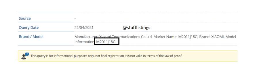 Mi MIX Fold ที่เปิดตัวในจีนมีหมายเลขรุ่นว่า M2011J18C ซึ่งปกติแล้วบริษัทจะใช้ตัว G แทน C ในรุ่นสากล ซึ่ง Mukul Sharma ได้เผยภาพที่มีหมายเลขรุ่นว่า M2011J18G ที่ถูกตรวจพบฐานข้อมูล IMEI และมีการลงทะเบียนบนฐานข้อมูล IMEI ของอินเดียด้วย