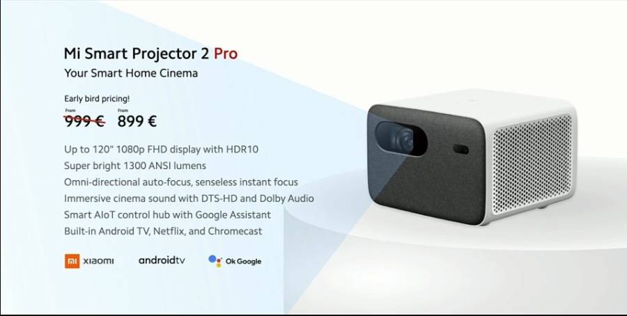 Xiaomi ได้ทำการเปิดตัว Mi Smart Projector 2 Pro โปรเจ็กเตอร์อัจฉริยะรุ่นใหม่ ที่รองรับ Google Assistant ทำงานบนระบบ Android TV และมีความสว่าง 1300 Lumens