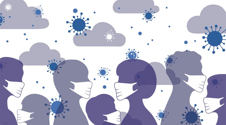 คนเราสามารถปล่อยสารคัดหลั่งจากระบบทางเดินหายใจออกมาระหว่างหายใจ ไม่ว่าจะเป็น การหายใจเบาๆ การพูด การร้องเพลง การออกกำลังกาย การไอและจามเป็นต้น โดยคำแนะนำฉบับปรับปรุงบนเว็บไซต์ของ CDC ระบุว่าไวรัสที่ไปกับละอองเหล่านี้สามารถแพร่กระจายการติดเชื้อได้
