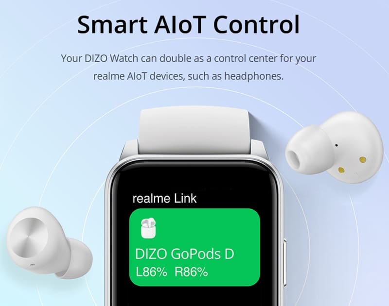 DIZO Watch มีระบบสมาร์ทคอนโทรล โดยดำเนินการผ่านแอปพลิเคชั่น realme Link ซึ่งสามารถควบคุมอุปกรณ์ที่รองรับ AIoT มากมาย อาทิเช่น ลำโพง บลูทูธ, หลอดไฟ เป็นต้น นอกจากนั้นยังสามารถควบคุมสมาร์ทโฟนให้เล่นดนตรีและการถ่ายภาพ การปลดล็อคสมาร์ทโฟนที่เก็บอยู่ใกล้ ๆ และยังช่วยค้นหาสมาร์ทโฟนได้อีกด้วย