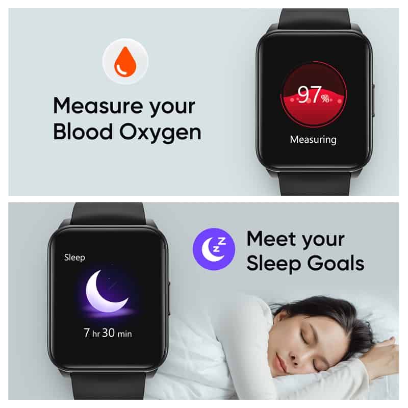 ด้วยระบบเซนเซอร์ PPG ที่ล้ำหน้า ช่วยให้การติดตามสุขภาพของสมาร์ทวอทช์แม่นยำกว่าที่เคย โดยจะติดตามอัตราการเต้นของหัวใจของผู้ใช้แบบเรียลไทม์ พร้อมระบบอัจฉริยะที่จะให้ข้อมูลในเชิงลึกของระดับสุขภาพและการออกกำลัง โดยคำนึงถึงการตั้งเป้าหมายของการออกกำลังกายไว้ แถมยังรองรับการตรวจสอบระดับออกซิเจนในเลือด ซึ่งสามารถแสดงผลทันทีหากระดับออกซิเจนในเลือดเกิดการผิดปกติและส่งผลต่อสุขภาพของคุณ นอกจากนี้ยังมีฟีเจอร์ด้านสุขภาพอื่น ๆ ที่มีประโยชน์ต่อผู้ใช้งาน ไม่ว่าจะเป็น ข้อมูลในการหลับ การอยู่นิ่งนาน ๆ และการดื่มน้ำซึ่งจะมีการแจ้งเตือนผ่านสมาร์ทวอทช์