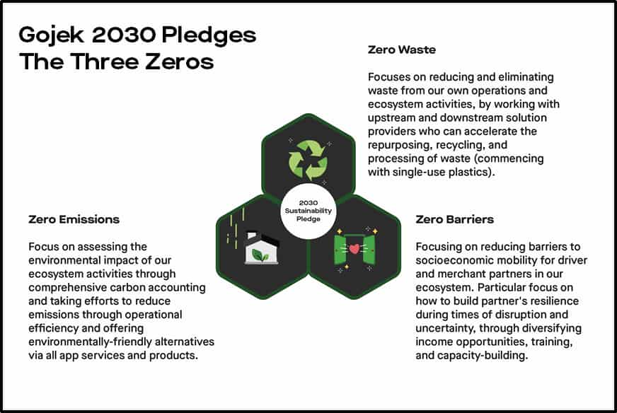 Gojek เป็นบริษัทอินเทอร์เน็ตรายแรกใน SEA ที่จัดทำรายงานความยั่งยืน มุ่งเป็นแพลตฟอร์ม แบบ Zero Emissions, Zero Waste & Zero Barriers ในปี 2030