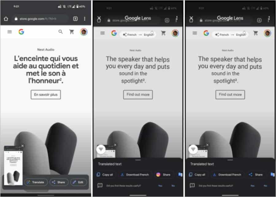 ปุ่มแปลภาษาจะปรากฏขึ้นบนหน้าจอเมื่อคุณใช้ Google Lens จับภาพของข้อความต่าง ๆ ที่คุณได้ทำการแคปเอาไว้ จากนั้นให้คลิกที่ปุ่มดังกล่าวเพื่อให้ระบบทำการตรวจจับและแปลข้อความที่คุณต้องการได้อย่างรวดเร็ว