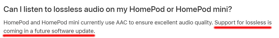 หนึ่งในข้อมูลที่น่าสนใจ คือ Apple กล่าวว่าทั้งอุปกรณ์ HomePod และ HomePod Mini จะรองรับคุณภาพเสียงระดับ lossless หลังจากมีการอัปเดตซอฟต์แวร์ในอนาคต ถือเป็นข่าวดีสำหรับผู้ที่ซื้อลำโพงอัจฉริยะของ Apple ไปก่อนหน้านี้แล้ว