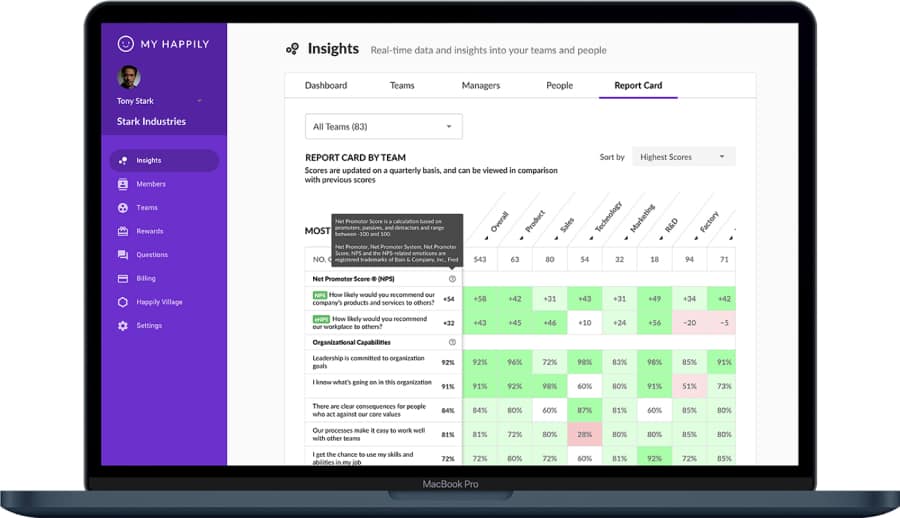 แอพที่ให้บริการผ่านแพลตฟอร์มมือถือนี้ จะช่วยให้องค์กรได้รับข้อมูลเชิงลึกแบบเรียลไทม์ทุกวัน แทนที่จะต้องรอผลรายปีจากแบบสำรวจการมีส่วนร่วมของพนักงาน โดยข้อความที่นำมาวิเคราะห์มาจากคำตอบของพนักงานถึงภาวะอารมณ์ไนที่ทำงานของตน Happily.ai ยังใช้สไตล์ความเป็นเกมและรูปแบบการสะสมแต้มเพื่อช่วยดึงดูดให้พนักงานเข้ามาให้ข้อมูลผ่านแอพทุกวัน โดยฟีดแบ็คที่ได้รับในเวลาที่เหมาะสม บนพื้นฐานของข้อมูล จะช่วยให้หัวหน้างานสามารถรับรู้ความรู้สึก เข้าใจถึงความท้าทายที่ทีมเผชิญอยู่ และสามารถสร้างแรงจูงใจทั้งในระยะสั้นและระยะยาวเพื่อปลูกฝังคุณลักษณะที่สอดคล้องกับวัฒนธรรมขององค์กรได้ แรงจูงใจในที่นี้อาจรวมถึงการโค้ชชิงแบบเวอร์ชวล การแนะนำหนังสือน่าอ่าน และการแสดงความชื่นชมเพื่อสร้างลักษณะนิสัยและวัฒนธรรมเชิงบวก