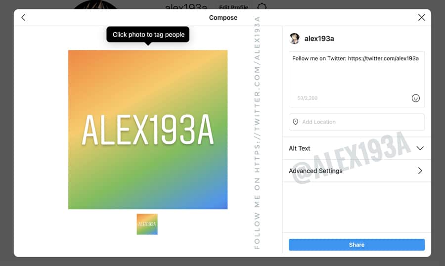 แต่ล่าสุด Alessandro Paluzzi นักพัฒนาระบบและผู้ปล่อยข่าวหลุดได้พบ code ของ Instagram ที่แสดงให้เห็นว่าแพลตฟอร์มโพสต์รูปยอดนิยม กำลังพัฒนาให้ผู้ใช้สามารถอัปโหลดรูปภาพและวิดีโอได้จากเว็บเบราเซอร์บนคอมพิวเตอร์เดสก์ท็อป