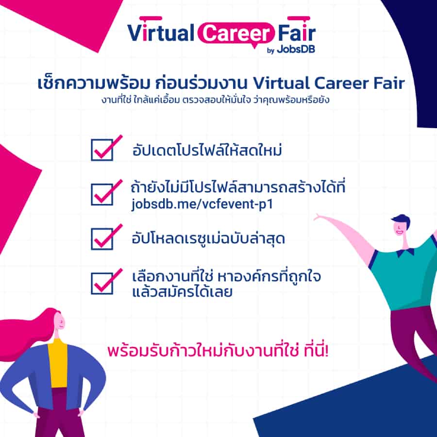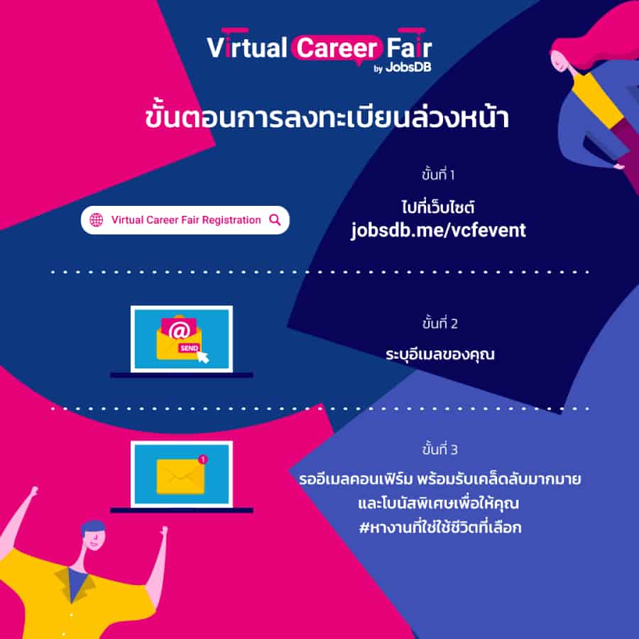ทั้งนี้ผู้ที่สนใจสามารถเข้าไปลงทะเบียนล่วงหน้าเพื่อร่วมงาน “Virtual Career Fair by JobsDB” ได้แล้วตั้งแต่วันนี้ที่ http://jobsdb.me/vcfevent1 โดยงานจะจัดขึ้นระหว่างวันที่ 7–11 มิถุนายน 2564 ต้องการข้อมูลเพิ่มเติมสอบถามได้ที่ จ๊อบส์ ดีบี (ประเทศไทย) โทรศัพท์ 02-670-0700 หรือ inbox สอบถามได้ที่เพจ JobsDB Thailand