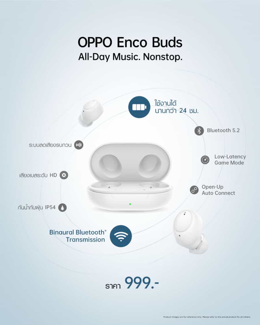 - ดูรายละเอียดผลิตภัณฑ์เพิ่มเติมได้ที่ https://www.oppo.com/th/accessories/enco-buds/