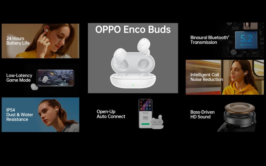 โดย OPPO Enco Buds มาในสโลแกน “All-Day Music. Nonstop.” พร้อมใช้งานได้อย่างต่อเนื่องถึง 24 ชั่วโมงต่อการชาร์จเพียง 1 ครั้ง มอบเสียงอันทรงพลังพร้อมความหน่วงต่ำด้วยการส่งสัญญาณเสียงผ่านระบบ Binaural Bluetooth ระบบเชื่อมต่อกับหูฟังบลูทูธทั้ง 2 ข้างในครั้งเดียว นอกจากนี้ยังเหมาะสำหรับสายเกมเมอร์ด้วย Low-Latency Game Mode จัดเต็มทุกการแข่งขันแบบไม่มีดีเลย์ พร้อมเต็มอิ่มมากขึ้นด้วยเบสอันทรงพลังระดับ HD และพูดคุยได้อย่างสะดวกสบายคมชัดทุกที่ทุกเวลาด้วยระบบตัดเสียงรบกวนระหว่างการโทรอัจฉริยะ ที่มาราคาเพียง 999 บาทเท่านั้น