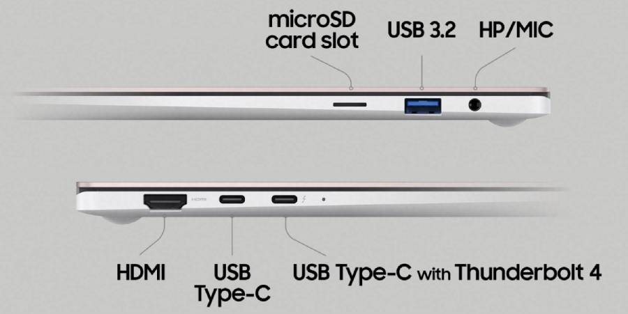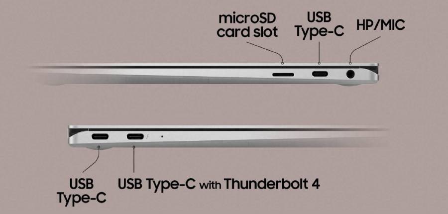 มีพอร์ต Thunderbolt 4 พอร์ต,USB-C 1 พอร์ต, USB-A 3.2 1 พอร์ต, HDMI 1 พอร์ต รุ่นหน้าจอ 13.3 นิ้วไม่มีพอร์ต HDMI แต่จะมีช่องใส่ Nano-SIM แทน และยังมีลำโพง AKG ที่รองรับระบบเสียง Dolby Atmos ด้วย