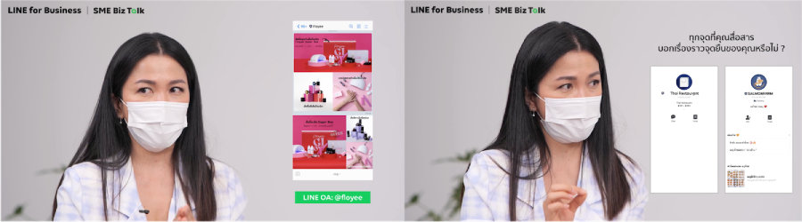 คุณบังอร ยังได้ยกตัวอย่างแบรนด์ Floyee ที่เลือกเปิดหน้าร้านออนไลน์บน LINE Official Account เพื่อขายผลิตภัณฑ์ทำเล็บ ซึ่งแบรนด์เข้าใจลูกค้าถึงความกังวลในการเข้าร้านทำเล็บในช่วงโควิด เลยนิยามตัวเองให้เข้ากับสถานการณ์ว่า ‘ทุกคนสามารถทำเล็บสวยที่บ้านได้เหมือนทำที่ร้าน’ และใช้ศักยภาพของ LINE Official Account มาสนับสนุนจุดแข็ง เช่น การสร้างเซ็ตสินค้าครบพร้อมใช้สำหรับทำเองที่บ้านเป็นตัวกระตุ้นให้ซื้อง่าย และการทำคอนเทนต์ How-to ลงไปใน LINE Official Account เพื่อให้ลูกค้าเข้ามารู้วิธีทำเล็บด้วยตัวเองแบบมืออาชีพ