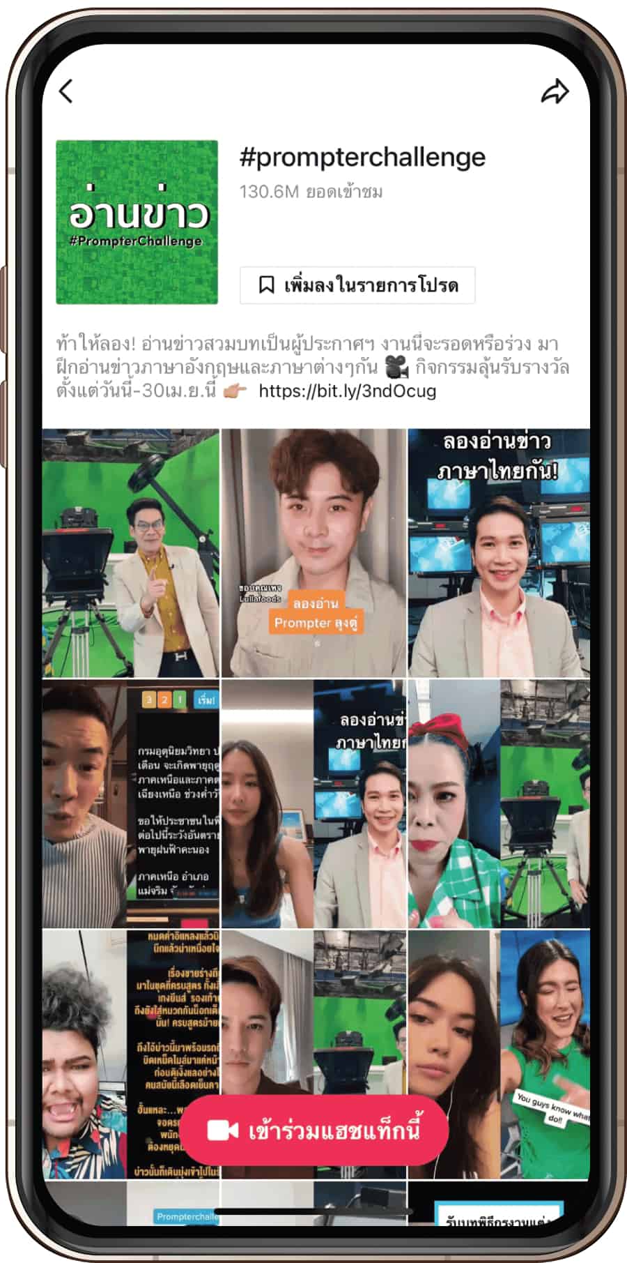 แคมเปญที่เปิดโอกาสให้ทุกคนได้สวมบทบาทเป็นผู้ประกาศข่าวและเรียนรู้การอ่านข่าวที่ต้องใช้ทักษะขั้นสูงด้วยการอ่านข่าวผ่านเครื่อง Prompter ซึ่งนอกจากจะสร้างการมีส่วนร่วมจากผู้คนในหลากหลายอาชีพแล้ว ยังเปรียบเสมือนการสานฝันให้กับใครหลายๆ คนมีความฝันอยากเป็นผู้ประกาศข่าวได้อย่างง่ายดาย และนอกจากการอ่านข่าวภาษาไทยยังมีอีกหลากหลายภาษาที่ท้าให้ทุกคนรวมสนุก จนทำให้เกิดคอนเทนท์สุดแปลกแหวกแนวมากมาย อาทิ การประกาศคำแนะนำบนเครื่องบินของอาชีพแอร์โฮสเตส, การสอนออกเสียงภาษาในภาคต่างๆ เป็นต้น ซึ่ง #PrompterChallenge สามารถสร้างความนิยมจากยอดวิวได้สูงถึง 131.5 ล้าน