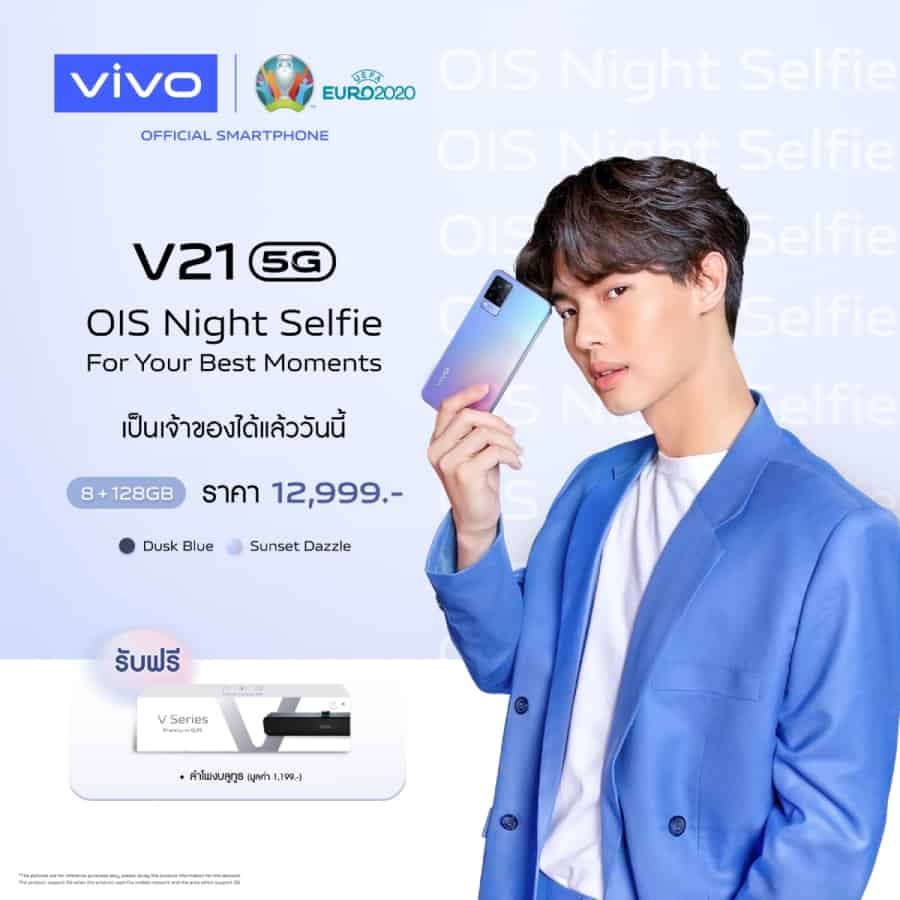 หลังจากที่ Vivo แบรนด์สมาร์ตโฟนชั้นนำระดับโลก ประกาศเปิดตัว Vivo V21 5G สมาร์ตโฟนรุ่นล่าสุดในตระกูล V Series อย่างเป็นทางการไปเมื่อสัปดาห์ที่ผ่านมา ในงาน ‘Exclusive Online Launch’ กับแนวคิด ‘OIS Night Selfie, For Your Best Moment’ โดยมีหนุ่ม ‘วิน เมธวิน โอภาสเอี่ยมขจร’ ขึ้นแท่นพรีเซนเตอร์พร้อมบอกเล่าเรื่องราวความใกล้ชิดผ่านบทเพลงพิเศษ ‘แค่ไหนก็ใกล้’ (Closer) ล่าสุด Vivo เปิดให้แฟนๆ ได้เป็นเจ้าของสุดยอดสมาร์ตโฟนสำหรับสายเซลฟีตัวจริงอย่างเป็นทางการแล้ววันนี้ โดยรุ่น RAM 8GB ความจุ 128GB ทั้งสี Sunset Dazzle และ Dusk Blue วางจำหน่ายแล้ววันนี้ ส่วนสี Arctic White จะเริ่มวางจำหน่ายใน วันที่ 20 พฤษภาคม 2564 เป็นต้นไป ที่ราคา 12,999 บาท พิเศษ! รับฟรีทันที ลำโพงบลูทูธมูลค่า 1,199 บาท เมื่อเป็นเจ้าของ Vivo V21 5G ที่ร้าน Vivo Brand Shop ทุกสาขา และตัวแทนจำหน่ายทั่วประเทศ