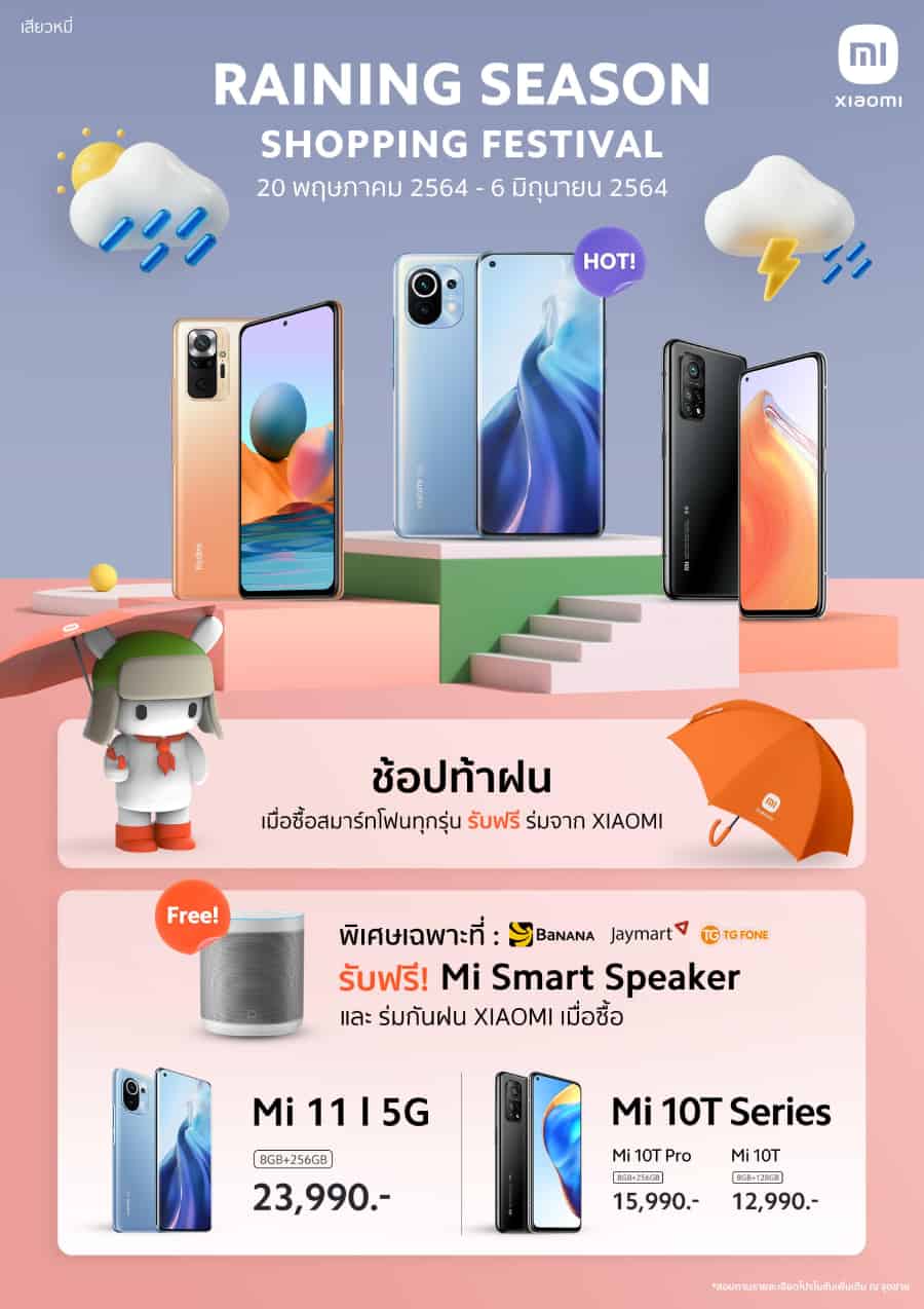 พลาดไม่ได้กับโปรฯ ต้อนรับหน้าฝน ณ Mi Store และร้านค้าที่ร่วมรายการทั่วประเทศ มาช้อปให้หัวใจชุ่มฉ่ำกันได้ ตั้งแต่วันที่ 20 พฤษภาคม 2564 – 6 มิถุนายน 2564 เท่านั้น!!!