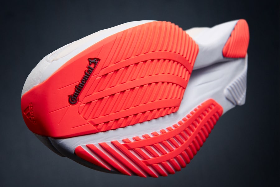 ส่วนพื้นรองเท้าชั้นนอกก็มีการใช้ CONTINENTAL RUBBER เสริมที่บริเวณปลายเท้าเพื่อระบุตำแหน่งในการยึดเกาะพื้นสำหรับการเร่งความเร็ว รวมถึงการจัดโครงสร้างบริเวณส้นเท้าที่ช่วยให้เท้าของผู้สวมใส่ยึดแน่นและไม่เกิดการลื่น พร้อมทั้งเสริมวัสดุบริเวณส้นเท้าเพื่อให้ความรู้สึกนุ่มสบายขณะสวมใส่ด้วยเช่นกัน