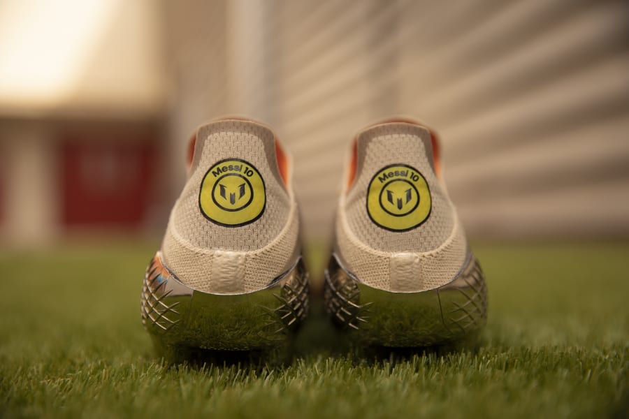 - บริเวณส้นเท้าของรองเท้าทั้งสองข้างการติดโลโก้ MESSI 10 ในวงกลมสีเหลืองที่พิมพ์ด้วยอักษรสีดำ
