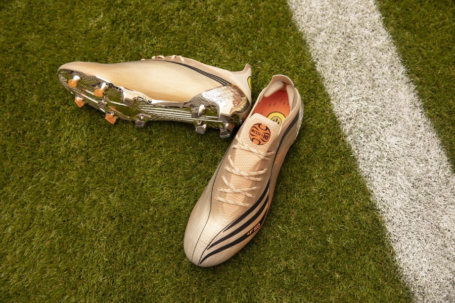 - บริเวณปลายเท้าของรองเท้าข้างซ้ายมีการพิมพ์ตัวอักษรสีส้ม +F50 ขณะที่ข้างขวาจะมีการพิมพ์ด้วยตัวอักษร +F30 ด้วยสีส้มเช่นเดียวกัน