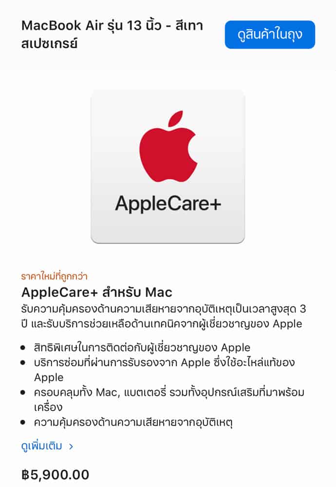 ข่าวดีสำหรับใครที่จะซื้อแมคช่วงนี้ ล่าสุด แอปเปิลปรับลด ราคา Apple Care+ สำหรับ MacBook Air และ MacBook Pro 13 นิ้ว ถูกลงกว่าเดิม (อัปเดต มิถุนายน 2564)