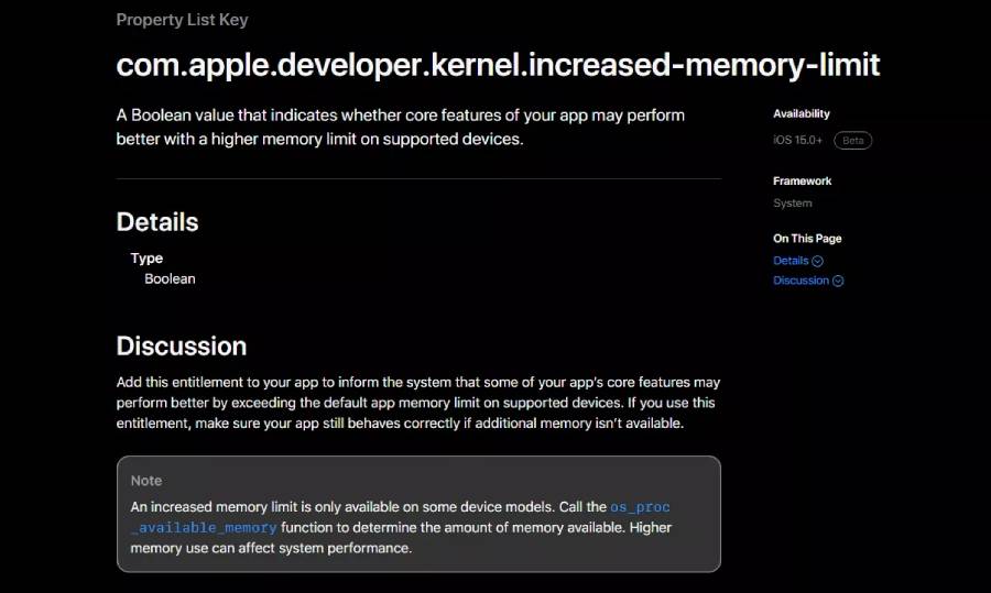แต่ใน iOS และ iPadOS 15 เบต้าที่แอปเปิ้ลพึ่งส่งให้นักพัฒนานั้น มีการอนุญาตให้แอปต่าง ๆ สามารถเข้าถึง RAM ได้มากขึ้น พร้อมคำอธิบายกำกับว่า “เฉพาะอุปกรณ์ที่รองรับ” และยังมีฟังก์ชั่นสำหรับเช็คแรมที่พร้อมใช้งาน ซึ่งทำให้เราแน่ใจว่ามันจะไม่มีข้อจำกัดในการใช้งานแรมอีกต่อไป