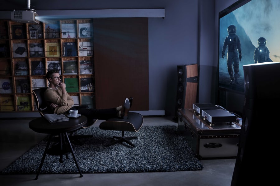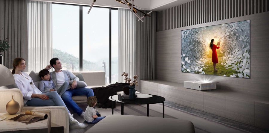 - V6000 เลเซอร์โปรเจคเตอร์ที่มีระยะฉายสั้นแบบ Ultra-Shot Throw ตอบโจทย์กลุ่มลูกค้าคอนโดฯ ระดับพรีเมียมที่ต้องการภาพขนาดใหญ่ในห้องนั่งเล่น หรือพื้นที่ที่ไม่สามารถคุมแสงได้