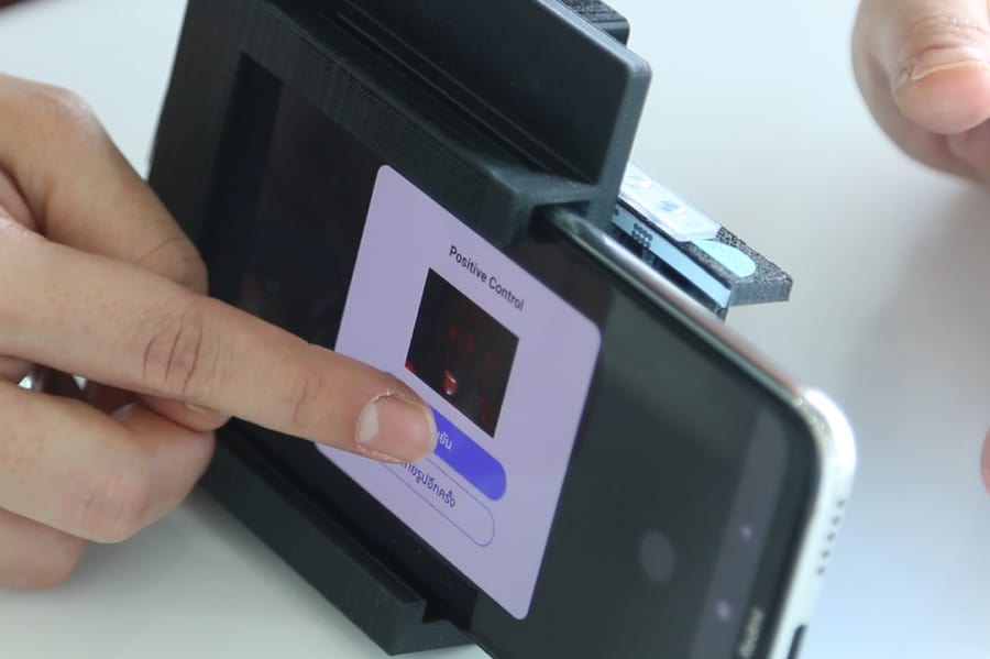 อีกหนึ่งนวัตกรรมแนวดิจิทัลเฮลท์ ที่ก้าวข้ามอุปสรรคในการใช้เครื่องมือแพทย์ขนาดใหญ่ ที่ไม่สะดวกต่อการพกพาหรือเคลื่อนย้าย แต่เชื่อหรือไม่ว่าปัจจุบันมีเพียงสมาร์ทโฟน พร้อมเครื่องมือตัวช่วยเพียงเล็กน้อย ก็สามารถช่วยให้คุณหมอตรวจวินิจฉัยเชื้อไวรัสได้แล้ว ! ด้วย “เครื่องมือตรวจเชื้อโควิดแบบเรืองแสง” ที่มาพร้อมเทคโนโลยีการตรวจหาเชื้อโควิด-19 ผ่านการอ่าน ‘ค่าเรืองแสง’ ของชุดตรวจทางชีวโมเลกุล ด้วยกล้องของสมาร์ทโฟน !! ช่วยแพทย์รู้ผล ผู้ติดเชื้อใน 45-60 นาที เร็วกว่าการตรวจในระบบปกติที่ต้องเข้าห้องแลปถึง 3 เท่า ซึ่งทีมแพทย์ยังสามารถนำไปใช้ในการลงพื้นที่หรือตรวจคัดกรองตามชุมชน (On Site) ได้ อีกทั้งยังมีต้นทุนในการพัฒนาที่ต่ำกว่าระบบปกติหลายเท่า