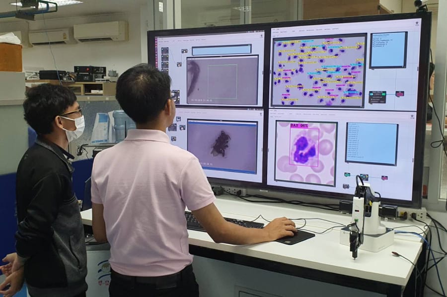 และคณะแพทยศาสตร์ มหาวิทยาลัยมหิดล นำโดย รศ. ดร.ศิริเดช บุญแสง คณบดี คณะเทคโนโลยีสารสนเทศ สจล. ดร.วีรยุทธ กิตติชัย อาจารย์ประจำคณะแพทยศาสตร์ สจล. ผศ. ดร.สันทัด ชูวงค์อินทร์ หัวหน้าศูนย์หุ่นยนต์อุตสาหกรรมและระบบอัตโนมัติ (CiRA) วิทยาลัยนวัตกรรมการผลิตขั้นสูง สจล., ดร. จักรพันธุ์ รุณเจริญ พร้อมด้วย ดร. อินทรี เสนสอน และ ศ.เกียรติคุณ ดร.วสันต์ จันทราทิตย์ ศูนย์จีโนมทางการแพทย์ (Center for Medical Genomics) คณะแพทยศาสตร์โรงพยาบาลรามาธิบดี มหาวิทยาลัยมหิดล และนางสาวทัชชา ยิ้มถิน อาจารย์ประจำภาควิชาจุลชีววิทยาและอิมมิวโนโลยี คณะเวชศาสตร์เขตร้อน มหาวิทยาลัยมหิดล ภายใต้การสนับสนุนของสำนักงานคณะกรรมการส่งเสริมวิทยาศาสตร์ วิจัยและนวัตกรรม (สกสว.)